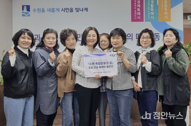 정안뉴스 안정주 기자 | 수원시 영통구 매탄3동은 지난 21일, 매탄3동 새마을부녀회가 ‘수원 독립운동의 길 조성 모금 릴레이’에 전 회원 동참 의사를 밝히며 뜻깊은 참여를 이어갔다고 밝혔다.