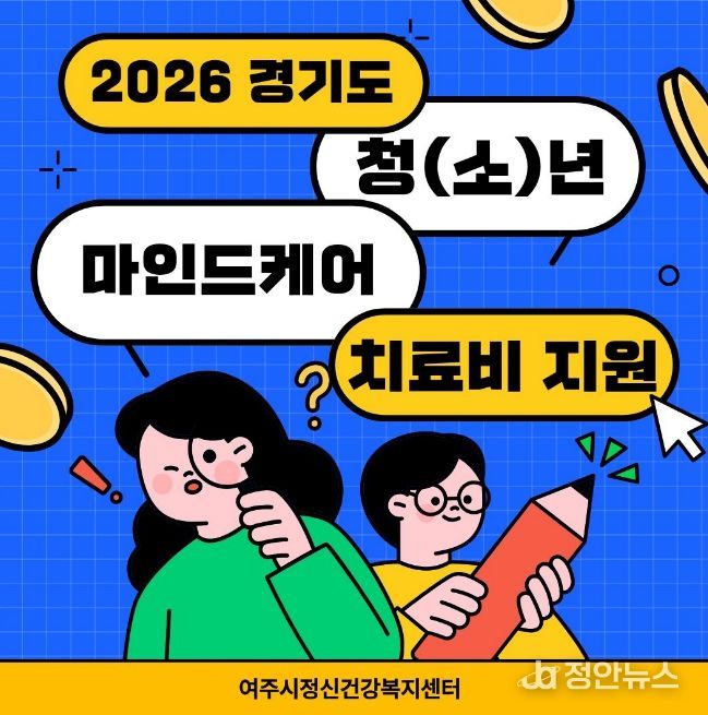정안뉴스 안정주 기자 | 여주시정신건강복지센터는 2026년도 '청(소)년 마인드케어 정신건강 외래치료비 지원사업'을 본격 시행한다고 밝혔다.