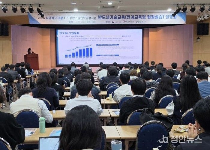 정안뉴스 안정주 기자 | 경기도교육청이 22일 경기도경제과학진흥원에서 한국나노기술원과 함께 도내 직업계고 학생의 나노·반도체 분야 인재 육성을 위한 ‘2026 나노융합기술인력 양성사업 및 취업 지원’ 공동설명회를 개최했다.