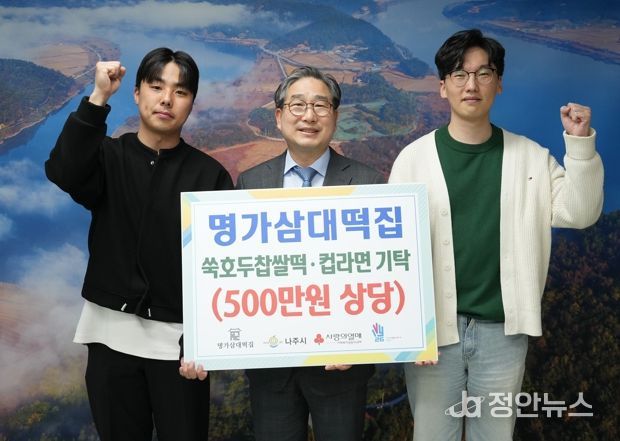 나주시는 전날 명가삼대떡집으로부터 쑥호두찹쌀떡 160박스와 컵라면 120박스를 기탁받았다고 22일 밝혔다.