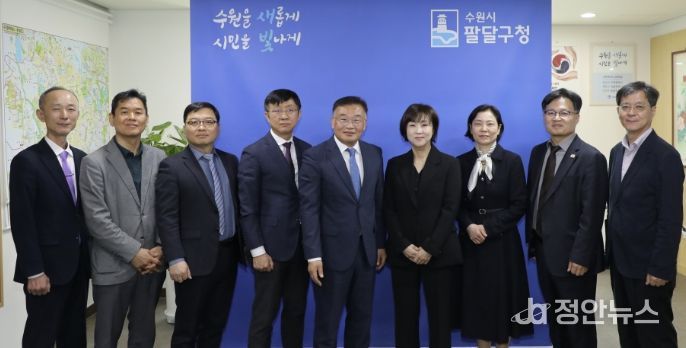 정안뉴스 안정주 기자 | 수원시 팔달구는 지난 22일, 팔달구청 구청장실에서 수원시 관내 8개 직업계 고등학교 교장단을 초청해 ‘2026년 수원특례시 장안·권선·팔달·영통 구청장배(통합) e스포츠 대회’의 성공적인 개최를 위한 간담회를 가졌다.