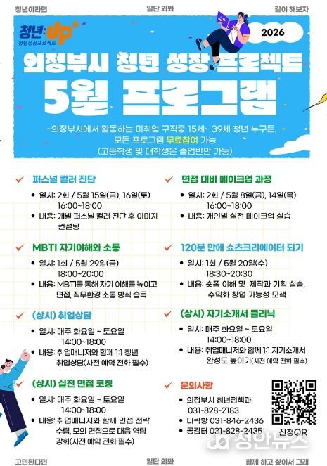 정안뉴스 안정주 기자 | 의정부시는 미취업 청년의 취업 준비 역량 강화를 위해 ‘청년성장프로젝트’ 5월 프로그램을 운영한다.