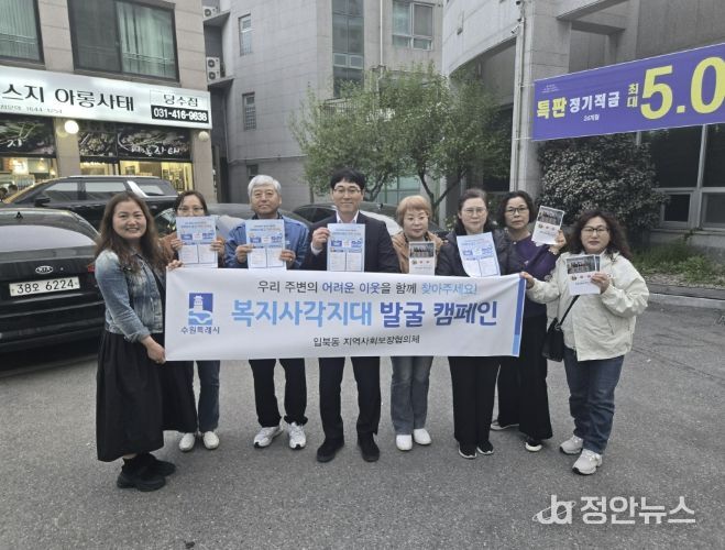 정안뉴스 안정주 기자 | 입북동 지역사회보장협의체는 지난 21일, 유동 인구가 많은 당수동 중심상가에서 복지사각지대 발굴과 후원자 발굴을 위한 캠페인을 전개했다.