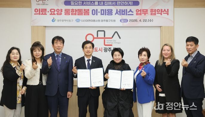 정안뉴스 안정주 기자 | 광주 동구는 최근 (사)대한미용사회 광주동구지회(회장 이예순)와 ‘거동불편 어르신 방문 이·미용 서비스’ 추진을 위한 업무협약을 체결했다고 밝혔다.