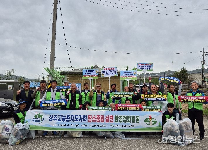 정안뉴스 안정주 기자 | 성주군은 4월 22일 성주읍 대황리 헬스로드(대흥교) 일원에서 농촌지도자 회원 20여 명이 참여한 가운데 탄소중립 실천을 위한 환경정화 활동을 실시했다고 밝혔다.