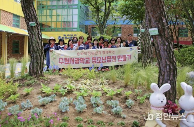 정안뉴스 안정주 기자 | 수원시 장안구는 지난 22일, 시민과 함께하는 열린 정원문화를 확산하고자 장안구 손바닥정원단 및 수원서광학교 학생들과 함께하는 '수원서광학교 청소년가든 조성 행사'를 개최했다.