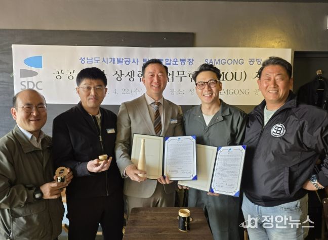 정안뉴스 안정주 기자 | 성남도시개발공사 탄천종합운동장은 성남시 중원구 소재 맞춤형 공예 전문점 ‘SAMGONG’ 공방과 업사이클링 사업 추진을 위한 업무협약(MOU)을 체결했다고 23일 밝혔다.