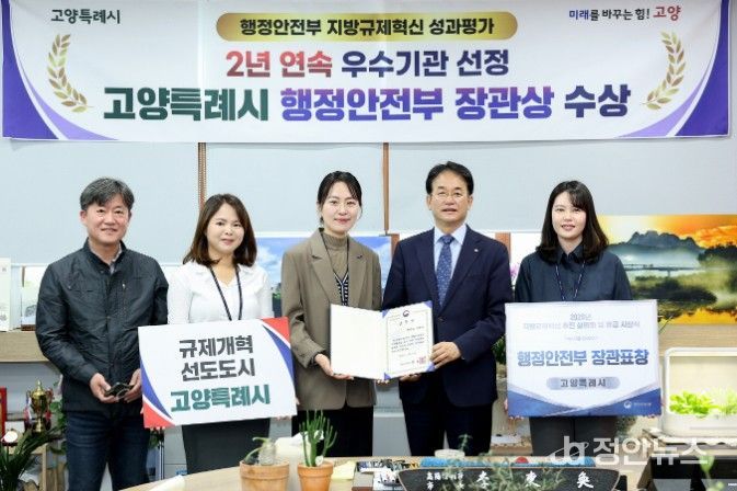 정안뉴스 안정주 기자 | 고양특례시는 지난 22일 행정안전부 주관 ‘2025년 지방규제혁신 성과평가’에서 행정안전부 장관상을 수상하며 규제혁신 분야에서의 경쟁력을 다시 한번 입증했다. 또 이번 평가에 따른 재정 인센티브로 지난해 말 특별교부세 1억 원을 확보했다.