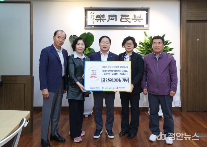 정안뉴스 안정주 기자 | 남양주시는 23일 시장 집무실에서 철마기업인회 봉사단 ‘함께하는 사람들’과 함께 저소득 중증장애인 가정 자녀를 위한 학원 교육비 전달식을 개최했다고 밝혔다.