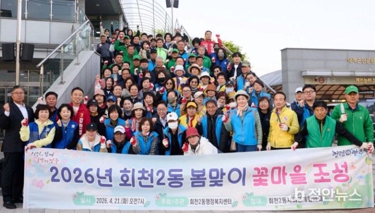 정안뉴스 안정주 기자 | 양주시 회천2동은 최근 쾌적하고 아름다운 도시 경관 조성을 위해 주민들과 함께 ‘2026년 봄맞이 꽃마을 조성’ 행사를 실시했다.