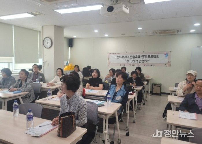‘은퇴자, 지역 환경교육 인재 프로젝트 Re-Start 인생 2막’은 경기도자원봉사센터 공모사업에 선정돼 사업비 420만 원을 지원받아 운영하는 사업이다. 이날 예비 교육에는 은퇴자 20여 명이 참석해 환경교육 강사의 역할과 활동 방향을 안내받고, 향후 교육과정과 자원봉사 계획을 공유했다.