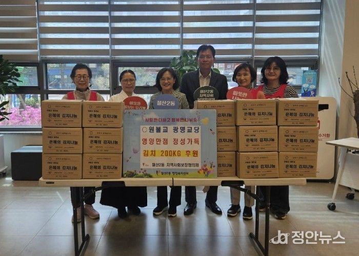 이번 후원은 원불교 광명교당 교도들이 어려운 이웃을 돕고자 정성껏 직접 담근 것으로, 지역사회 나눔 문화 확산에 뜻을 더했다.
