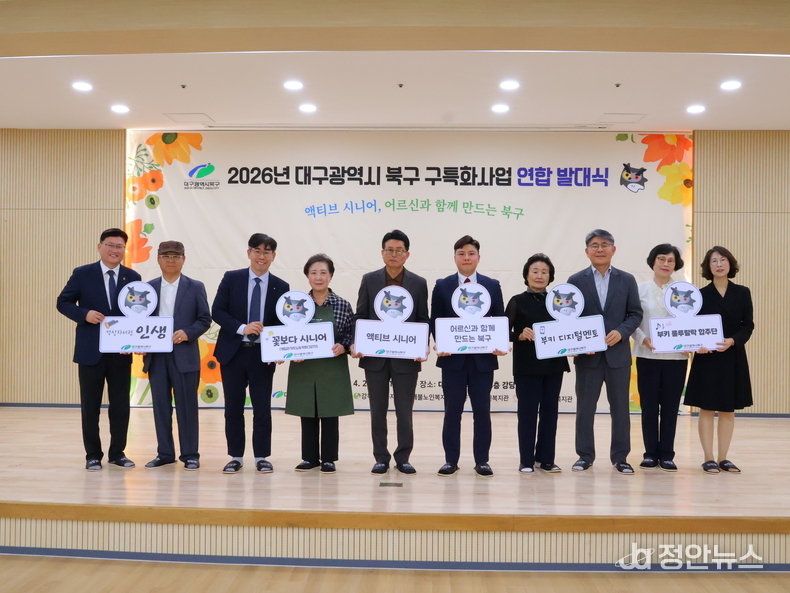 강북, 대불, 북구, 함지·서변노인복지관은 4월 22일(수) 대불노인복지관 3층 강당에서 대구광역시 북구의 지원 아래 「2026년 구특화사업 연합 발대식」을 공동 개최하고, 어르신 중심의 구특화사업을 본격 추진한다고 밝혔다.