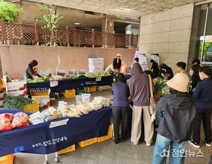 정안뉴스 안정주 기자 | 수원로컬푸드가 23일 한국마사회 수원지부에서 ‘시민에게 찾아가는 직거래 장터’를 운영했다.