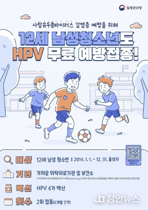 정안뉴스 안정주 기자 | 안산시는 질병관리청 방침에 따라 내달 6일부터 사람유두종바이러스(HPV) 국가예방접종 지원 대상을 12세 남성 청소년까지 확대한다고 24일 밝혔다.