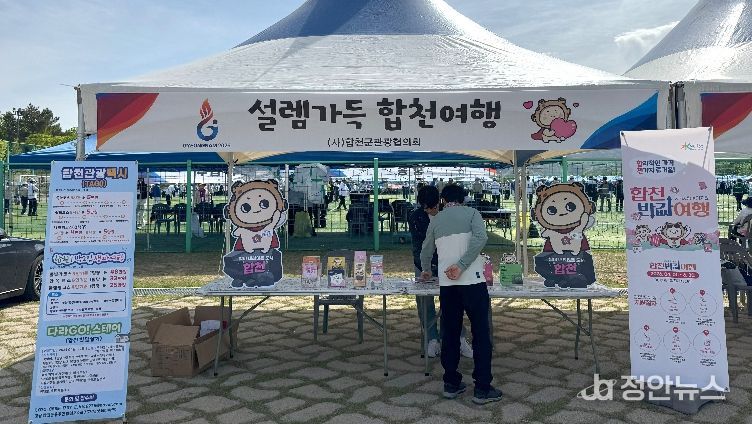 정안뉴스 김재홍 기자 | (사)합천군관광협의회는 23일부터 24일까지 이틀간 합천군 잔디광장 일원에서 열린 ‘2026 전국생활체육대축전’ 게이트볼 경기장에서 전국의 참가 선수단 및 관계자를 대상으로 관광홍보부스를 운영하며 합천 관광 홍보를 펼쳤다.