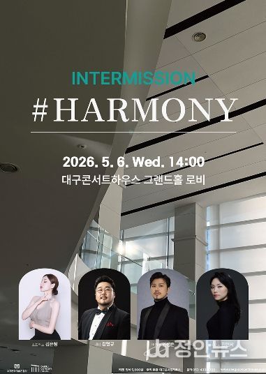정안뉴스 안정주 기자 | 대구콘서트하우스는 오는 5월 6일 오후 2시, 시민들에게 일상 속 여유를 선사할 ‘2026 클래식 오아시스 '인터미션 #하모니'’를 그랜드홀 로비에서 개최한다.