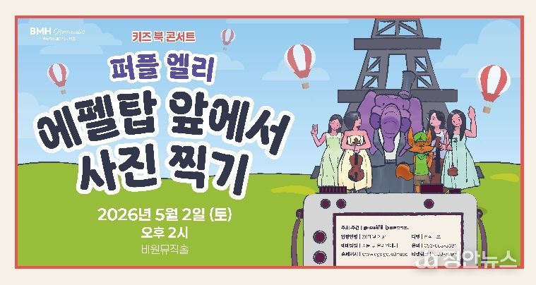 정안뉴스 안정주 기자 | 비원뮤직홀에서는 어린이날을 기념하기 위해 아이와 가족이 함께 감상할 수 있는 키즈 북 콘서트 ‘퍼플 엘리 – 에펠탑 앞에서 사진 찍기’를 오는 5월 2일 개최한다.