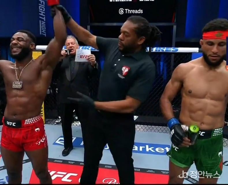 'UFC 페더급 공식랭킹 5위' 알저메인 스털링이 'UFC 페더급 랭킹 7위' 유세프 잘랄을 만장일치 판정으로 잡아냈다.