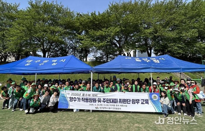 정안뉴스 안정주 기자 | 대구 동구청은 지난 23일, 지저동 둔치 체육시설에서 동구 지역자율방재단 단원 및 관내 22개 동 행정복지센터 재난안전담당자 120여명이 참여한 가운데 양수기 작동법 및 주민대피지원단 임무 교육을 실시했다.