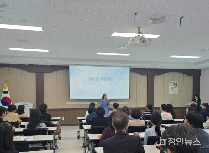 이번 교육은 청탁금지법, 이해충돌방지법, 공직자행동강령 등 주요 법령을 중심으로 구성하여 국민청렴권익교육원 이미자 청렴교육 강사가 '‘淸廉을 利廉처럼’'이라는 지자이렴(智者利廉)주제로 2시간 동안 강의를 진행했다.