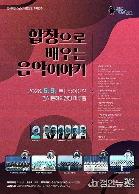 정안뉴스 김재홍 기자 | 김해시립소년소녀합창단은 오는 9일 오후 5시 김해문화의전당 마루홀에서 기획공연 ‘합창으로 배우는 음악이야기’를 개최한다고 29일 밝혔다.
