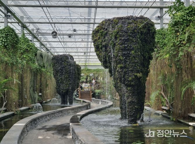 정안뉴스 안정주 기자 | 제28회 함평나비대축제가 열리는 함평 엑스포공원 내 수생식물관에 조성된 ‘정글경관’이 신비로운 연출로 관람객들의 이목을 끌고 있다.