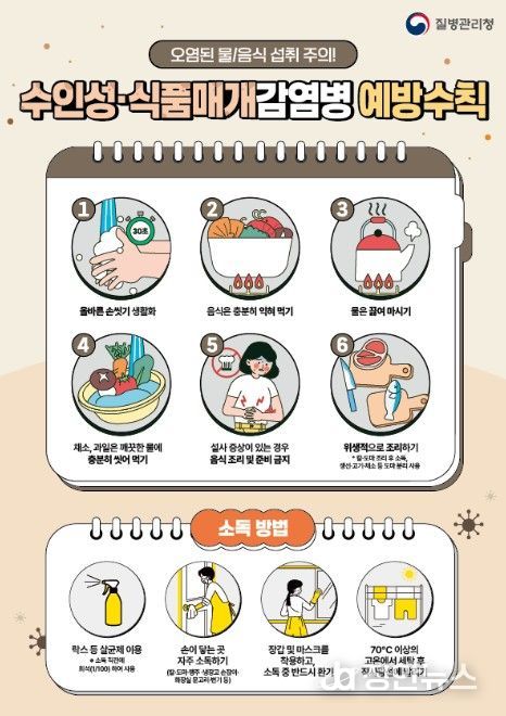 여름철은 기온 상승으로 병원성 미생물의 증식이 활발해지고 야외활동 및 휴가가 증가하는 시기로, 집단 발생 위험이 높아지는 만큼 개인위생 수칙 준수가 중요하다.