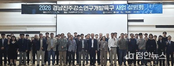 정안뉴스 김재홍 기자 | 진주시와 경남진주강소특구지원센터는 4월 28일 경상국립대학교 BNIT(28동) 대회의실에서 공동연구개발기관, 기업 관계자 및 예비 창업자 등 70여 명이 참석한 가운데 ‘2026년 경남진주강소연구개발특구 육성사업 설명회’를 개최했다.