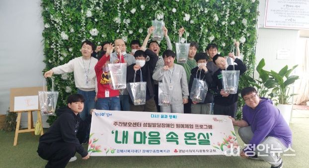 정안뉴스 김재홍 기자 | (재)김해시복지재단 김해시장애인종합복지관은 지난 4월 3일과 17일 양일간 주간보호센터 이용자를 대상으로 성인발달장애인 원예체험 프로그램 ‘내 마음 속 온실’을 진행했다고 밝혔다.