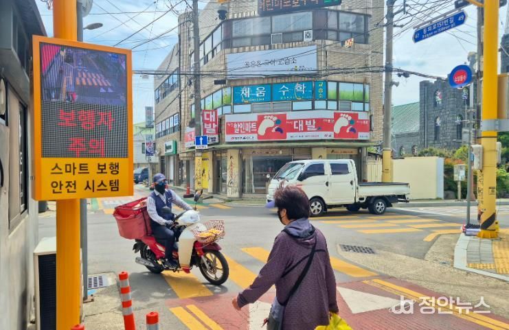 이번에 도입된‘스마트 알림이’는 대성초등학교 어린이 보호구역에 신호등이 없는 횡단보도와 교차로 사각지대 등 교통사고 위험이 높은 구간에 설치되어 CCTV 영상을 실시간으로 표출함으로써 보행자와 운전자 모두에게 차량 접근 상황을 직관적으로 전달하는 역할을 한다.