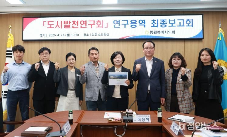 정안뉴스 김재홍 기자 | 창원특례시의회 도시발전연구회는 27일 최종보고회를 열고 ‘통합창원시 균형발전을 위한 권역별 기능 재편 연구’의 결과를 공유했다.