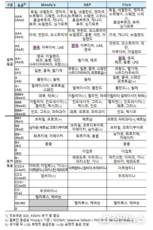 정안뉴스 안정주 기자 | 국제 신용평가사 S&P는 4.29일 한국의 국가신용등급 및 전망을 ‘AA, 안정적’으로 유지한다고 발표했다. S&P는 중동 분쟁에 따른 글로벌 에너지 시장의 불안이 ’26년 한국 경제의 위험 요소이나, 반도체 등 산업 부문의 경쟁력과 재정정책이 이러한 부담을 완화할 것이라고 전망했다. 또한, 향후 3~4년 동안 대부분의 고소득 국가들보다는 높은 평균 성장률을 유지할 것으로 예상했다.