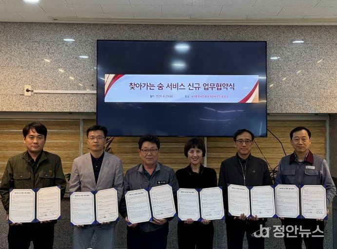 정안뉴스 안정주 기자 | 대구공공시설관리공단은 지난 4월 29일, 공단 대기환경사업처에서 대구 시민의 맑은 숨 권리 보장을 위해 칠곡공작한양아파트 외 3개 아파트와 ‘찾아가는 숨 서비스’ 업무협약을 체결했다.