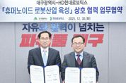 정안뉴스 안정주 기자 | 대구광역시는 12월 30일 오후 2시 30분, 산격청사 제1대회의실에서 국내 로봇 시장 점유율 1위 기업인 HD현대로보틱스와 ‘휴머노이드 로봇 산업 육성’을 위한 업무협약(MOU)을 체결했다. 이번 협약은 대구시와 HD현대로보틱스가 협력해 지역경제의 핵심 성장 동력으로 육성 중인 휴머노이드 로봇 산업의 저변을 확대하고, 관련 생태계를 조성하는 중요한 첫걸음이다. 특히 양 기관은 대구 로봇산업의 질적 도약을 위해 ‘로봇 국가첨단전략산업 특화단지’ 지정에 역량을 집중하고, 대구를 대한민국 로봇 산업의 전초기지로 구축한다는 구상이다. 또한, 대구시는 HD현대로보틱스 대구 본사 공장의 제조 혁신을 위한 ‘AI 팩토리 선도프로젝트’를 추진하고, 로봇 실증 인프라 확충을 위한 국비 예산 확보 등 정책적 지원을 강화할 방침이다. HD현대로보틱스는 글로벌 로봇 시장 수요 증가에 선제적으로 대응하기 위해 현재 연간 8,000대 수준인 생산 능력을 20,000대 규모로 2.5배 확대할 계획이다. 이를 위해 제조 공정에 AI 기술을 본격 도입하고, 자동화율을 기존 50%에서 80%까지 끌어올릴