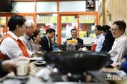 정안뉴스 안정주 기자 | 추석연휴 첫날인 3일 김동연 경기도지사가 파주 문산자유시장을 찾아 통큰세일 지원 확대와 문산자유시장-DMZ 지역 평화 관광 홍보 강화를 약속했다. 이번 방문은 민족 대명절을 앞두고 도민 장바구니 물가를 안정시키고, 경기침체로 어려움을 겪는 소상공인과 전통시장 상인들에게 힘을 보태기 위한 차원에서 마련됐다. 김동연 지사는 지역 상인들과 오찬 간담회를 갖고 경기침체와 소비 위축 등으로 어려움을 겪고 있는 현장의 목소리를 직접 들었다. 상인들은 경기 살리기 통큰세일 행사 시 전통시장 상권별 지원액 상향과 문산자유시장-DMZ 지역 평화 관광 홍보를 요청했다. 이에 김동연 지사는 “경기도는 9월 추경을 통해 20억 원을 추가 확보, 하반기 총 52억 원 규모로 통큰세일을 진행할 예정”이라며 “통큰세일 기간 많은 도민께서 전통시장을 찾을 수 있도록 다각적이고 전방위적인 홍보를 실시하겠다”고 말했다. 이어 “경기관광공사를 통해 문산자유시장-DMZ 지역 평화 관광 홍보를 확대하고 디엠지 오픈(DMZ OPEN) 스포츠 행사와 캠프그리브스, 도라산 평화공원 안내소 등에 홍보물을