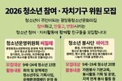 정안뉴스 안정주 기자 | (재) 군포시청소년재단 군포시청소년지역센터 광정동청소년문화의집은 2026년을 맞아 다양한 청소년 참여ㆍ자치기구를 모집한다고 밝혔다. 이번 모집은 청소년운영위원회, 청소년봉사단, 청소년동아리 등 총 3개 분야로 진행되며, 청소년의 자율성과 주도성을 기반으로 한 참여 활동을 중심으로 운영된다. 청소년운영위원회 ‘씨밀레’는 광정동청소년문화의집 운영에 직접 참여하는 공식 청소년 참여기구로, 정기회의와 시설·프로그램 모니터링, 의견 제안 및 간담회 등을 통해 청소년의 목소리를 정책과 운영에 반영하는 역할을 수행한다. 모집 대상은 9세부터 24세까지의 청소년 15명이다. 청소년봉사단 ‘바이크’는 환경과 지역사회를 주제로 한 실천 중심 봉사활동 조직이다. 캠페인 운영, 지역 행사 지원, 봉사 기획 활동 등을 통해 나눔의 가치를 실현하며, 9세부터 19세까지 청소년 20명을 모집한다. 또한 청소년동아리 ‘놀아청’은 공연, 체험, 기획 활동 등 관심 분야를 중심으로 자율적으로 구성·운영되는 조직이다. 9세부터 24세까지의 청소년으로 구성된 동아리 10팀을 모집하며,