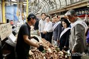 정안뉴스 황도연 기자 | 천안시의회는 민족 대명절인 추석을 앞두고 10월 2일 중앙시장을 찾아 시민과 상인들에게 따뜻한 인사를 전하며 명절 분위기를 함께 나누었다. 이번 방문은 경기 침체와 물가 상승으로 어려움을 겪고 있는 전통시장 상인들과 시민들의 노고를 살피고, 격려하며 명절의 정을 나누기 위해 김태흠 충남도지사와 김석필 천안시장 권한대행과 함께 하는 자리로 마련됐다. 김행금 의장을 비롯 △이종만 복지문화위원장, △강성기 경제산업위원장, △정도희 의원, △권오중 의원 등은 전통시장을 돌며 상인들의 애로사항을 청취하고, 제수용품을 직접 구매하며 전통시장 활성화에 동참했다. 특히 지역 상권을 살리고 서민 경제에 활력을 불어넣기 위해 ‘전통시장 이용’의 중요성을 강조했다. 김행금 의장은 “전통시장은 지역 공동체의 뿌리이자 시민과 함께하는 생활 공간”이라며 “추석 명절을 맞아 시민 모두가 따뜻하고 넉넉한 정을 나누고, 전통시장이 활기를 되찾을 수 있도록 의회 차원에서도 지속적으로 관심과 지원을 이어가겠다”고 말했다. 천안시의회는 앞으로도 민생 현장을 지속적으로 찾아 시민 목소리에 귀 기울이고, 지역경제