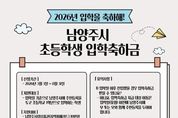 정안뉴스 안정주 기자 | 남양주시는 오는 3월부터 2026년 초등학교에 입학하는 아동의 새로운 출발을 응원하기 위해 입학축하금 지원 사업을 추진한다고 3일 밝혔다. 이번 사업은 초등학교 입학이라는 중요한 생애 전환기를 맞는 아동과 가정을 실질적으로 지원하기 위해 마련한 교육복지 정책의 일환으로 추진됐다. 지원금은 지역화폐로 지급해 교육지원과 동시에 지역 내 소비 촉진의 효과를 도모할 예정이다. 지원 대상은 입학일 기준 남양주시에 주민등록을 두고, 일반 초등학교 또는 대안교육기관에 2026학년도 1학년으로 최초 입학하는 학생이다. 학생 1인당 남양주사랑상품권(지역화폐카드) 10만 원이 지급될 예정이다. 신청은 3일부터 8월 31일까지 남양주시청 누리집 또는 거주지 읍면동 주민센터 방문을 통해 가능하다. 아동과 함께 주민등록이 등재된 부모 또는 사실상 양육자가 신청할 수 있다. 신청자는 본인 명의 휴대전화에 경기지역화폐 애플리케이션을 설치 후 남양주사랑상품권을 등록해야 하며, 지원금은 신청일이 속한 달의 다음 달 말일에 지급된다. 지급된 입학축하금은 지급일 기준으로 3년 이내 사용해야 한다. 사용 기한