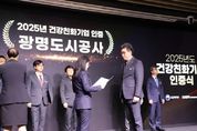 정안뉴스 안정주 기자 | 광명도시공사는 보건복지부와 한국건강증진개발원이 주관하는 기업 인증 심사에서‘건강친화기업 인증’을 획득하고 2월 25일 보코서울강남에서 진행된 ‘건강친화기업 인증식’에 참석했다고 밝혔다. 공사는 근로환경 조성을 위한 체계적인 계획 수립과 실행, 환경 평가와 개선활동 추진, 근로시간의 체계적 관리, 건강휴가 지원제도 운영 등 다양한 건강증진 제도를 내실 있게 시행한 점에서 높은 평가를 받았다. 서일동 광명도시공사 사장은 “이번 성과는 근로자의 건강과 안전을 최우선의 가치로 두고 임직원 건강증진을 위해 지속적으로 추진해 온 노력의 결과”라고 밝히며,“앞으로도 건강관리 체계를 지속적으로 고도화하여 더욱 건강한 일터를 조성하겠다.”고 밝혔다. 건강친화기업 인증제도는 '국민건강증진법'에 근거하여 건강친화적 직장 문화와 환경을 조성하고, 직원 스스로 건강관리를 적극 수행할 수 있도록 지원하는 등 건강친화제도를 모범적으로 운영하고 있는 기업에 인증을 부여하는 제도이다. 해당 제도는 건강친화경영, 건강친화문화, 건강친화활동, 직원만족도 조사 등의 지표를 종합적으로 평가한다.