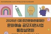 정안뉴스 안정주 기자 | 포천문화관광재단은 오는 2월 6일 포천반월아트홀 소극장에서 ‘2026년 문화예술 공모지원사업 통합설명회’를 개최한다. 이번 통합설명회는 지역 예술인과 예술단체를 대상으로 2026년 추진되는 문화예술 공모지원사업 전반을 소개하고, 사업에 대한 이해도를 높여 참여를 활성화하기 위해 마련됐다. 설명회는 2023년부터 매년 개최되고 있으며, 지역에서 활동하는 예술인들과 직접 소통하며 활동 과정에서의 어려움을 공유하고, 지원사업의 수행 방법과 개선 의견을 나누는 자리로 활용되고 있다. 2026년 포천문화관광재단이 추진하는 문화예술 공모지원사업은 총 4개 사업, 약 3억 2천만 원 규모로, 주요 사업은 ‘포천에 도착한 당신의 예술(포·도·당)’, 경기예술지원사업 ‘포천 모든예술31’, 경기 민간문화공간 활성화 사업 ‘포천 모든공간31’, ‘장애인 문화예술 진흥사업’이다. ‘포천에 도착한 당신의 예술(포·도·당)’은 지역 예술인의 지속 가능하고 자생적인 창작활동 기반을 마련하고 시민의 문화예술 향유 기회를 확대하기 위해 2021년부터 추진해 온 사업으로, 전문예술, 청년예술, 생활문화