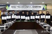 정안뉴스 안정주 기자 | 장수군은 27일 군청 2층 회의실에서 전북특별자치도 농생명산업지구로 지정된 ‘저탄소한우 산업지구’의 성공적인 조성과 활성화를 위해 관계기관‧단체와 업무협약(MOU)을 체결했다. 이날 협약식에는 최훈식 장수군수를 비롯해 장수한우지방공사, 전북대학교, 장수·장계농협, 무진장축협, 전국한우협회 장수군지부, 장수군유통사업단, ㈜이티바이오텍, ㈜복수 등 10개 기관·단체 대표가 참석해 협약기관 간 상호 업무체계를 구축했다. 이번 협약에 따라 장수군은 사업 총괄과 정책 지원을 담당하고 전북대학교·무진장축협·장수한우지방공사·㈜이티바이오텍은 저메탄 종축 및 사양관리 기술개발과 현장 실증을 추진한다. 또한 ㈜복수는 저탄소 기반 도축·가공 시스템을 구축하고 장수·장계농협과 장수군유통사업단은 ‘장수 저탄소 한우’ 브랜드 홍보와 판로 확대에 나선다. 여기에 전국한우협회 장수군지부는 생산자 조직으로서 농가 참여 확대와 현장 의견 수렴, 사업 확산을 위한 협력체계를 강화하고자 한다. 장수군은 이번 협약 참여기관 간 실무협의회를 구성해 데이터 공유와 탄소 감축 가이드라인 준수, 공동 마케