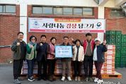 정안뉴스 안정주 기자 | 경기중부시민로스쿨 안양지원이 안양시 저소득 취약계층 100가구에 김장 김치 10kg 100통을 기부했다. 24일 안양시에 따르면, 경기중부시민로스쿨 안양지원은 지난 22일 군포시 소재 사업장에서‘사랑의 김장나눔, 희망더하기’ 행사를 진행하며 직접 김장 김치를 담갔다. 이날 행사는 경기도 자원봉사 김장비 지원공모전에 선정되어 받은 지원금과 회원들의 십시일반 보탠 모금액으로 진행됐다. 회원들은 품질이 우수한 배추와 재료를 사용해 정성껏 김장김치 담그기를 추진했다. 김사녀 안양지원장은 “작은 나눔이지만, 직접 담근 김치를 통해 소외된 이웃들에게 따뜻한 마음을 전할 수 있어 매우 뜻깊다”며, “앞으로도 지역사회와 함께하는 다양한 나눔 활동을 적극적으로 지원하겠다”고 밝혔다. 최대호 안양시장은 “한마음으로 담가주신 김장김치가 어려운 이웃들의 따뜻한 겨울나기에 큰 도움이 될 것”이라며, “정성어린 나눔을 실천해주신 시민로스쿨과 모든 참여자분들께 진심으로 감사드린다”고 말했다. 한편 경기중부시민로스쿨 안양지원은 지역 주민을 대상으로 생활법률 및 권익 교육과 상담을 제공하며
