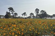 정안뉴스 안정주 기자 | 여주시 남한강 출렁다리 남단 일원 연양동에 위치한 금은모래강변공원 초화원에 황화코스모스가 만개하여 손님맞이 준비를 마쳤다. 금은모래강변공원 초화원(2,400㎡, 약700평)은 매년 다양한 종류의 초화류를 계절별로 심어 색다른 풍경을 연출하고 있다. 가을을 맞이하여 황화코스모스를 심었으며 만개한 황화코스모스 언덕이 절정의 풍경을 이루고 있다. 금은모래강변공원은 아이들이 이용하기 좋은 아이누리 놀이터가 있으며, 놀이터와 인접하여 피크닉장이 마련되어 있어 가족 단위 방문객이 가을을 즐길 수 있는 최적의 공원이다. 또한 방문객들의 건강을 증진하고 힐링 할 수 있도록 외곽 순환산책로가 조성되어 있고 올해 흙향기 맨발길을 조성하여 휴식과 운동을 겸할 수 있도록 시설을 확보했다. 여주시(산림공원과장 장홍기)는 야외 활동하기 좋은 화창한 가을에 활짝핀 코스모스를 볼 수 있고 아이누리놀이터와 피크닉장, 흙향기 맨발길 등 여러 시설들을 이용할 수 있는 금은모래강변공원을 많이 찾아와 주시길 바라며, 향후 다양한 사업을 발굴하는데 적극 앞장서겠다고 밝혔다.