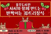 정안뉴스 안정주 기자 | 김포시 풍무도서관에서 초등학생을 대상으로 ‘사서와 함께 만드는 반짝이는 3D트리장식’을 오는 12월 10일 오후 4시부터 6시까지 운영한다. 이번 프로그램은 수강생의 학년에 따라 제작 도구의 난이도와 창작물이 구분되며, 참여 학생의 수준에 맞춘 맞춤형 체험활동으로 운영된다. 3D펜을 활용한 제작 경험을 통해 공간·입체 감각을 향상시키는 동시에 연말 크리스마스 시즌의 특색있는 분위기를 느낄 수 있다. 특히 풍무도서관 특화담당 사서가 직접 프로그램을 진행함으로써 안전하고 체계적인 지도가 이뤄질 것이다. 참여 신청은 11월 25일 오전 10시부터 풍무도서관 홈페이지에서 가능하며, 초등학생(1~6학년) 총 12명을 선착순 모집한다.