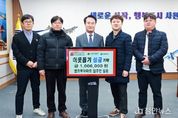 정안뉴스 김재홍 기자 | 사천 엘크루 아파트 입주민 일동(회장 최정수)는 지난 1월 29일 사천시청을 방문해 관내 저소득층을 돕기 위한 성금 1,006,000원을 기탁했다. 이번 성금은 입주민들이 자발적으로 참여해 마련한 것으로, 이웃을 돕기 위한 정성 어린 마음이 담긴 성금이다. 사천 엘크루 아파트 입주민들은 평소에도 지역의 어려운 이웃을 위해 정기적인 봉사활동을 이어오고 있으며, 지난해에 이어 올해도 나눔 실천에 동참하여 지역사회에 따뜻한 온기를 전하고 있다. 최정수 회장은 “추운 겨울 어려운 이웃들이 조금이나마 따뜻하게 지내는데 도움이 되길 바라는 마음으로 성금을 마련했으며 앞으로도 지역사회 취약계층을 위한 나눔을 지속적으로 이어가겠다”라고 말했다. 박동식 시장은 “매년 이웃을 향한 따뜻한 마음으로 나눔을 실천하고 있는 사천 엘크루 아파트 입주민 여러분께 깊이 감사드리며, 기탁한 성금은 지역 내 어려운 이웃을 위해 소중히 사용하겠다”라고 밝혔다. [뉴스출처 : 경상남도 사천시]