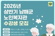 정안뉴스 김재홍 기자 | 남해군 노인복지관은 2026년 상반기 프로그램 수강생을 2월 2일부터 25일까지 모집한다고 밝혔다. 상반기 프로그램은 평생교육 2강좌, 취미여가 11강좌, 건강증진 3강좌 등 총 15강좌로 구성됐으며, 3월 3일부터 6월 26일까지 운영된다. 세부적인 프로그램은 스마트폰교육, 노래교실, 고고장구반, 손발 마사지 등 다양한 교육이 준비되어 있으며 자세한 사항은 남해군 홈페이지에서 확인 가능하다. 수강생은 선착순으로 모집하며, 수강신청 인원 기준 미달시 해당 프로그램은 폐강된다. 수강료는 강좌당 5천원으로 교재비와 재료비는 별도다. 기초생활수급자, 국가유공자, 등록장애인은 무료이며 차상위계층은 수강료의 50%가 감면된다. 수강을 원하는 군내 60세 이상 어르신은 남해군 노인복지관(055-860-3723)으로 방문하시거나 팩스(Fax : 860-3725)로 신청하면 된다. 남해군 관계자는 “어르신들의 건강하고 활기찬 노후생활을 도모할 수 있도록 건강 증진, 평생교육, 취미생활 등의 다양한 분야별 프로그램를 마련했다”며 “준비한 프로그램 수강을 통하여 어르신들이 신체적·정신적으로 더욱