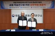 정안뉴스 김재홍 기자 | 경남연구원과 국립가야문화유산연구소는 17일 국립가야문화유산연구소에서 경남 지역 문화유산의 체계적인 조사와 연구 협력 강화를 위해 업무협약을 체결했다. 이번 협약은 경남 지역 고대사 연구의 중추적 역할을 수행해 온 두 기관이 그간의 협력 성과를 공고히 하고, 향후 경남 문화유산의 역사적 가치를 세계적으로 알리기 위해 마련됐다. 양 기관은 그동안 경남의 주요 유적 조사에서 긴밀한 협력 관계를 이어왔다. 함안 성산산성은 국립가야문화유산연구소의 장기 조사 이후 경남연구원이 후속 연구를 수행하며 학술적 연속성을 이어가고 있다. 또한 창원 봉림사지 역시 국립가야문화유산연구소의 발굴 조사 이후 경남연구원이 추가 조사를 진행하며 유적의 역사적 가치 규명에 성과를 내고 있다. 이와 함께 함안 말이산 고분군과 함안 성산산성 등 주요 유적에서 출토된 유물의 정밀 과학 분석 과정에서도 국립가야문화유산연구소의 전문 역량이 지원돼 경남 고대사 연구의 신뢰도를 한층 높였다는 평가를 받는다. 이번 협약에는 △경상남도 소재 문화유산의 조사·연구·보존·관리 등을 위한 공동 학술연구, △연구 인력 및 학술정