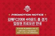 정안뉴스 김재홍 기자 | 김해FC2008이 오는 21일 오후 2시 김해종합운동장에서 열리는 수원삼성블루윙즈와의 ‘하나은행 K리그2 2026’ 4라운드 홈 경기를 앞두고, 첫 승을 기원하는 대대적인 할인 프로모션을 진행한다고 밝혔다. 먼저 온라인 예매자를 대상으로 파격적인 가격 혜택을 제공하는 ‘빅토리(VICTORY) 이벤트’를 실시한다. 오는 16일(월) 오전 11시부터 놀티켓 웹 또는 앱을 통해 N석 입장권을 예매할 경우, 1매당 단돈 1,000원에 구매할 수 있다. N석은 김해의 서포팅존으로, 팬들이 선수단 벤치와 가까운 거리에서 보다 역동적인 응원을 보낼 수 있도록 기획됐다. 입장권은 1인당 최대 4매까지 예매 가능하다. 경기 당일 현장 매표소에서는 구단의 상징색을 드레스 코드로 활용한 ‘레드 코드(RED CODE) 이벤트’가 진행된다. 붉은색 상의(유니폼, 티셔츠 등)를 착용하고 방문한 관람객이 E석 입장권을 구매할 경우 50% 할인 혜택을 받을 수 있다. 이번 이벤트는 경기장을 붉게 물들여 선수들에게 승리의 에너지를 전달하자는 취지이며, 현장에서 1인 최대 4매까지 구매 가능