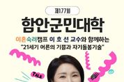 정안뉴스 김재홍 기자 | 함안군은 오는 18일 오후 3시 함안군청 3층 대회의실에서 군민의 평생학습 기회 확대와 삶의 질 향상을 위해 '제177회 군민대학'을 개최한다고 밝혔다. 이번 군민대학은 이호선 교수가 초청돼 '21세기 어른의 기쁨과 자기 돌봄 기술'을 주제로, 현대인의 정서적 문제와 관계 회복, 자기 돌봄의 중요성에 대한 통찰을 나누는 시간으로 마련됐다. 이호선 교수는 연세대학교에서 상담심리학 박사 학위를 취득한 심리 전문가로, 제이티비씨(JTBC) ‘이혼숙려캠프’와 이비에스(EBS) ‘부모클래스’ 등 다양한 방송에 출연하며 인생 전환기의 심리와 관계 회복에 대한 통찰을 전해왔다. 특히 중장년층을 위한 현실적인 조언으로 공감을 얻고 있으며, 대표 저서로는 ‘오십의 기술’, ‘이호선의 나이 들수록’ 등이 있다. 함안 군민대학은 함안군민 누구나 무료로 참석할 수 있으며, 별도의 사전 신청 없이 선착순으로 현장 입장이 가능하다. 군 관계자는 "이번 강연으로 군민들이 자기 돌봄의 기술을 통해 인생의 후반기를 의미 있게 설계하는 계기가 되길 바란다"며 "앞으로도 군민과 함께하는 평생학